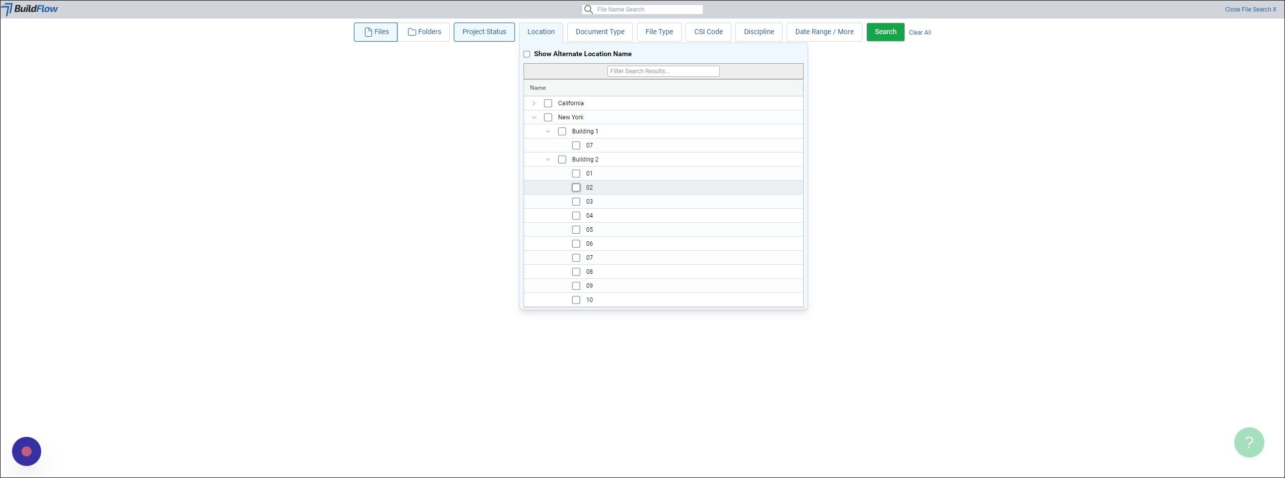 9. This will give you all "Locations" within you Account and let you narrow down the file search to a specific location or even a specific floor within that location.