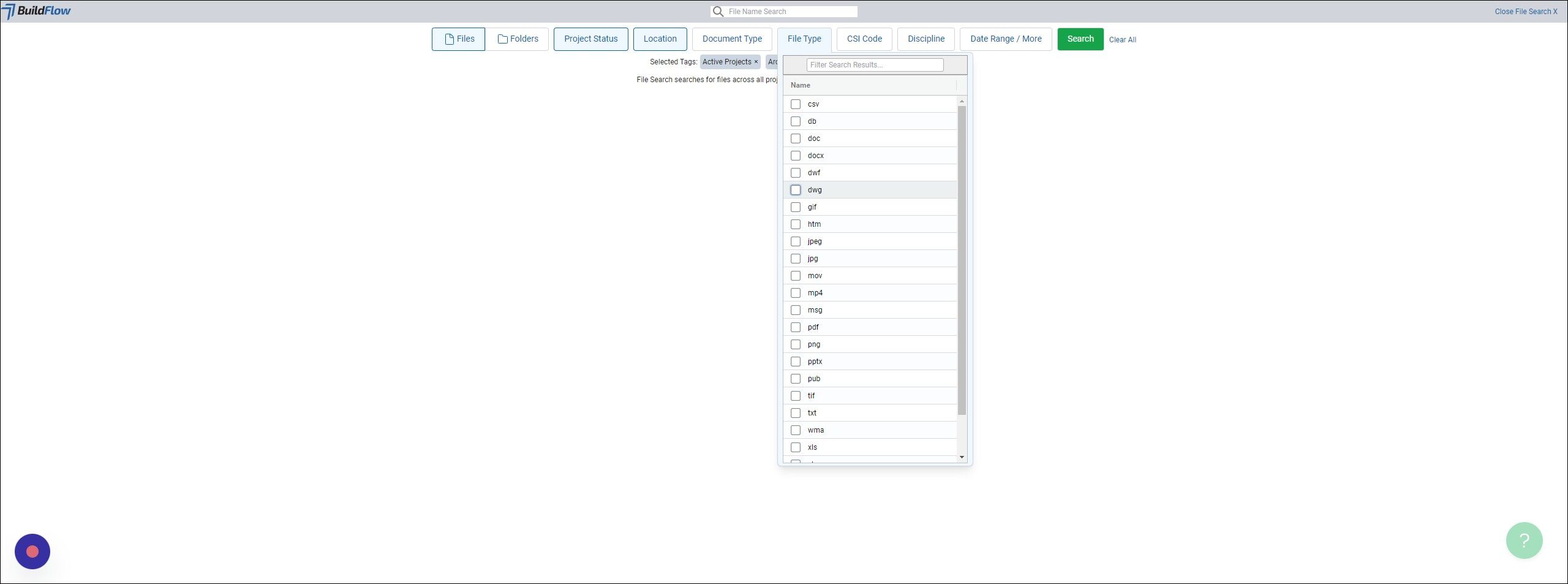 13. This will let you search for a specific File Type (Ex: DWG, CAD, PDF, BIM or XlSX)