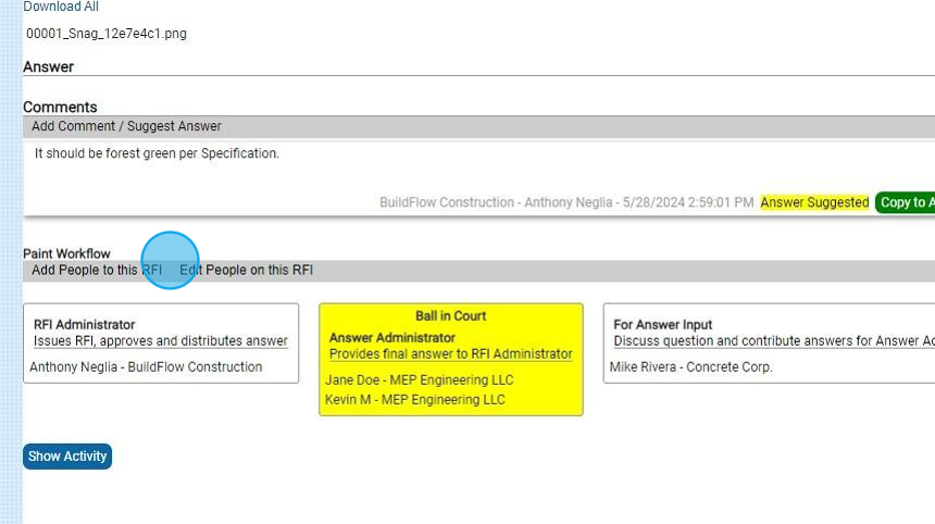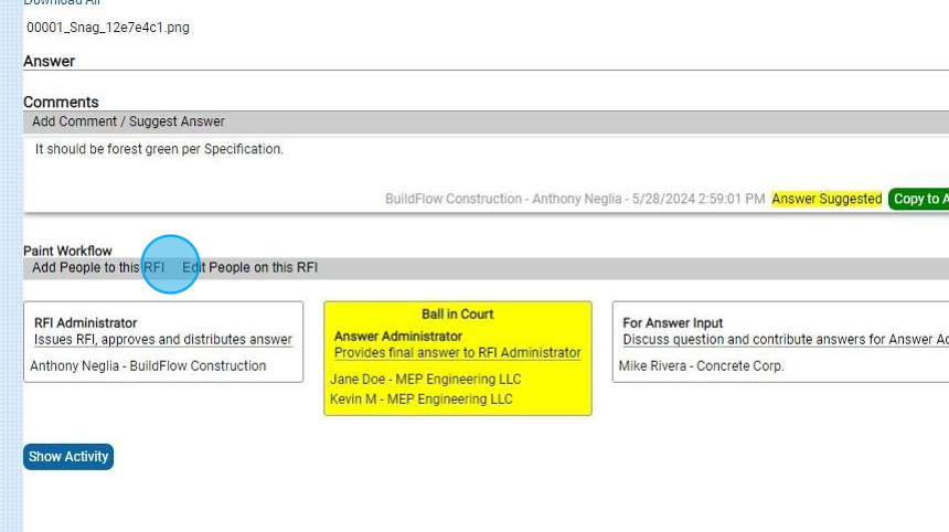 7. Click "Add People to this RFI" or "Edit People on this RFI" to edit the workflow.
