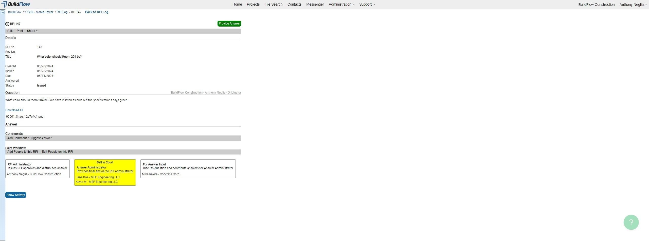 9. Click "Provide Answer" to answer the RFI.
