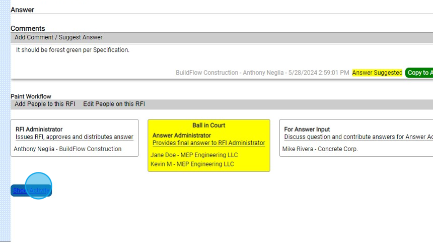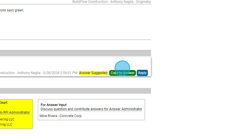 Tip! The RFI Administrator and/or the Answer Administrator can provide the Answer.