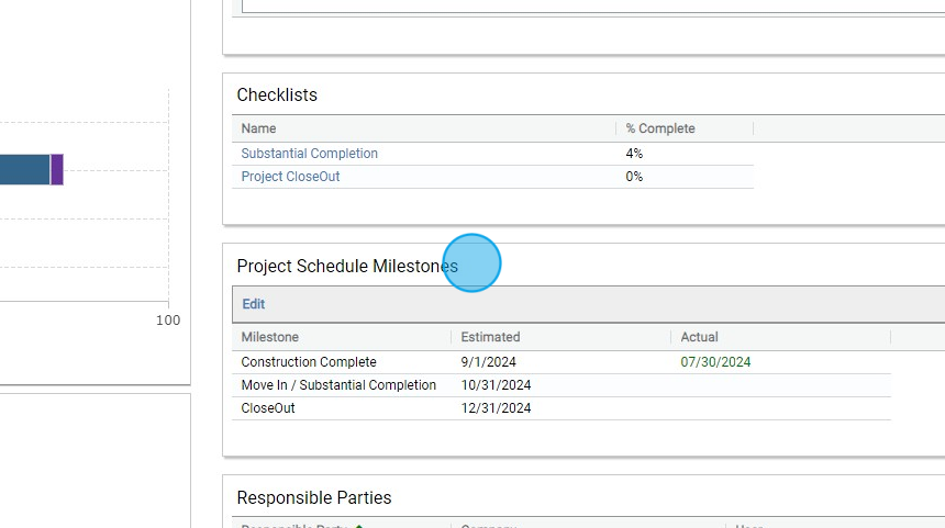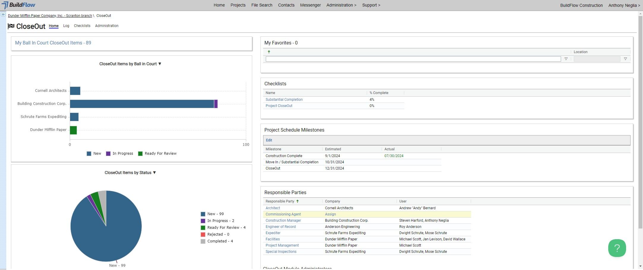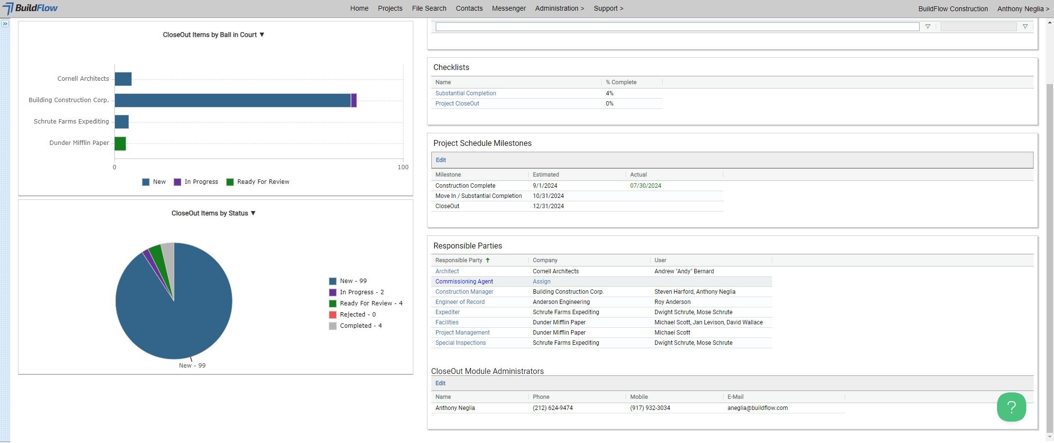 6. CloseOut Item due dates are calculated based on Project Schedule Milestones. When a date is modified the related CloseOut Item due dates are automatically adjusted.