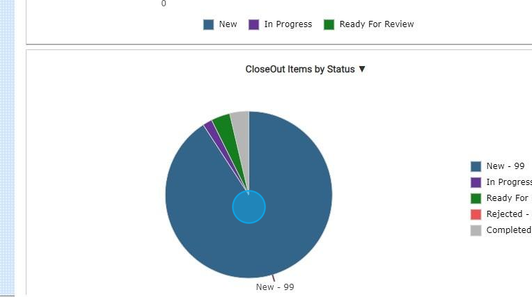 3. The CloseOut Item by Status Chart provides an overview of all CloseOut Items for the project summarized by status.