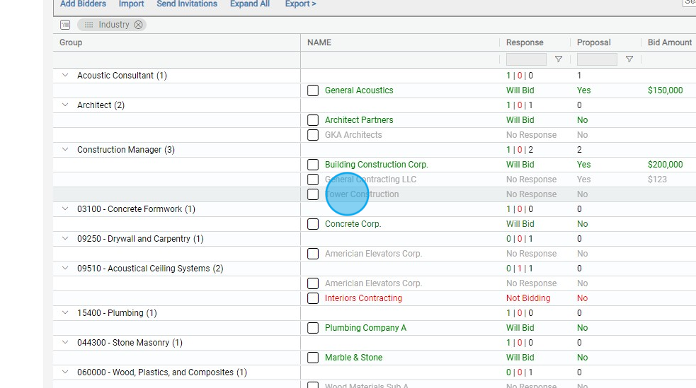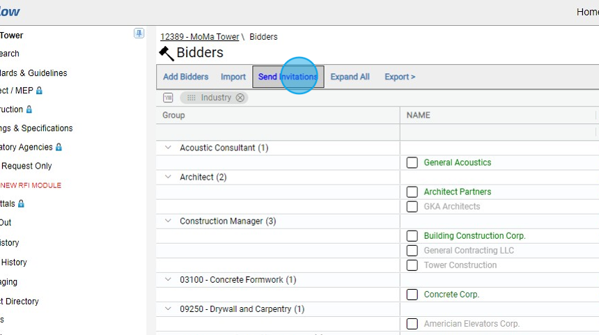 Sending Invitations to Bid