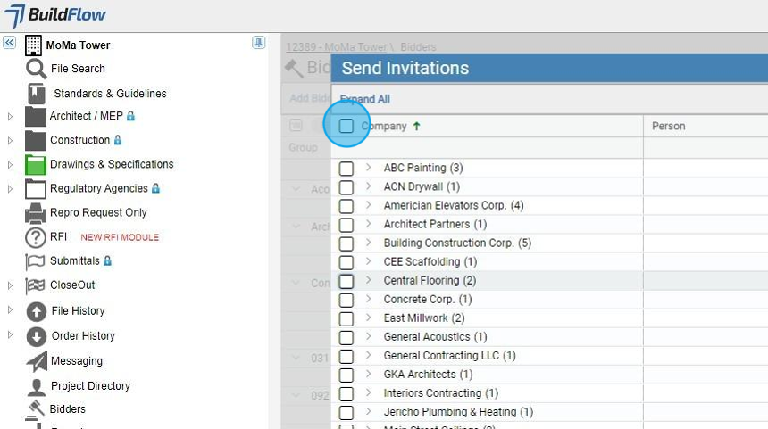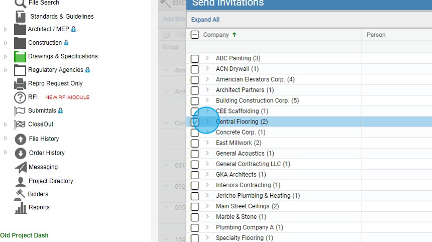 8. You can also select the individuals within a company you would like to send or resend the Invitation to Bid to.