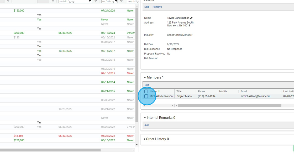 3. Click this checkbox to select the members you want to sent the Invitation to Bid to.