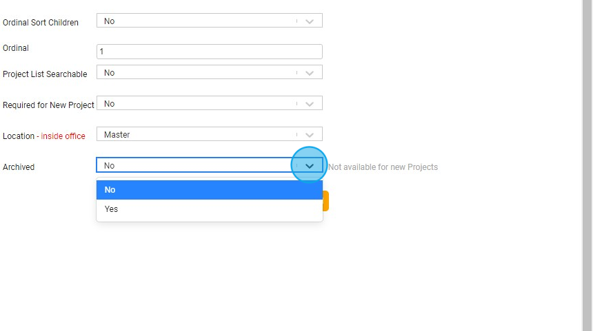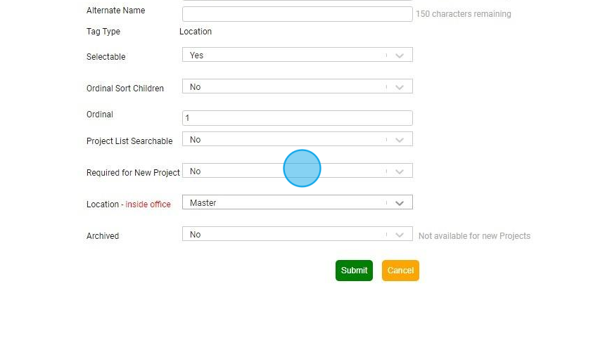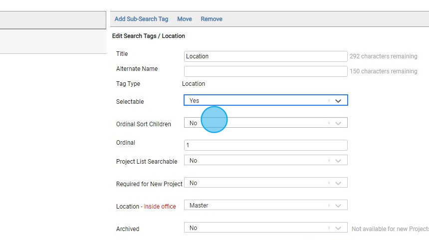 14. Set to Yes if this Search Tag is required when creating a new project.