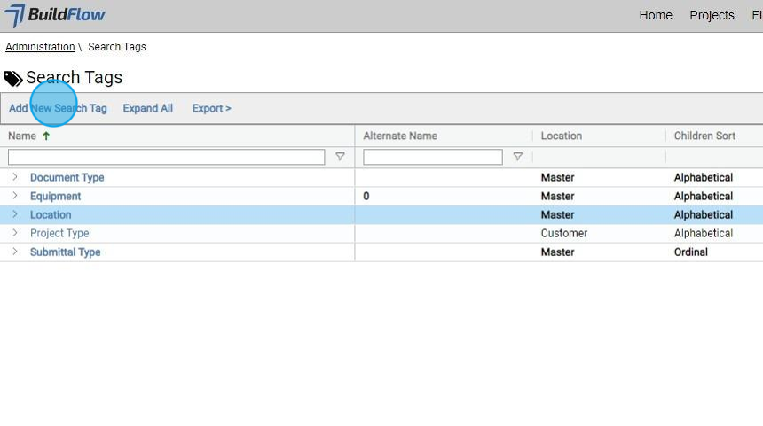 15. Any Search Tags that are created here all automatically flagged as Customer Search Tags that are separate from the BuildFlow Master Search Tags.