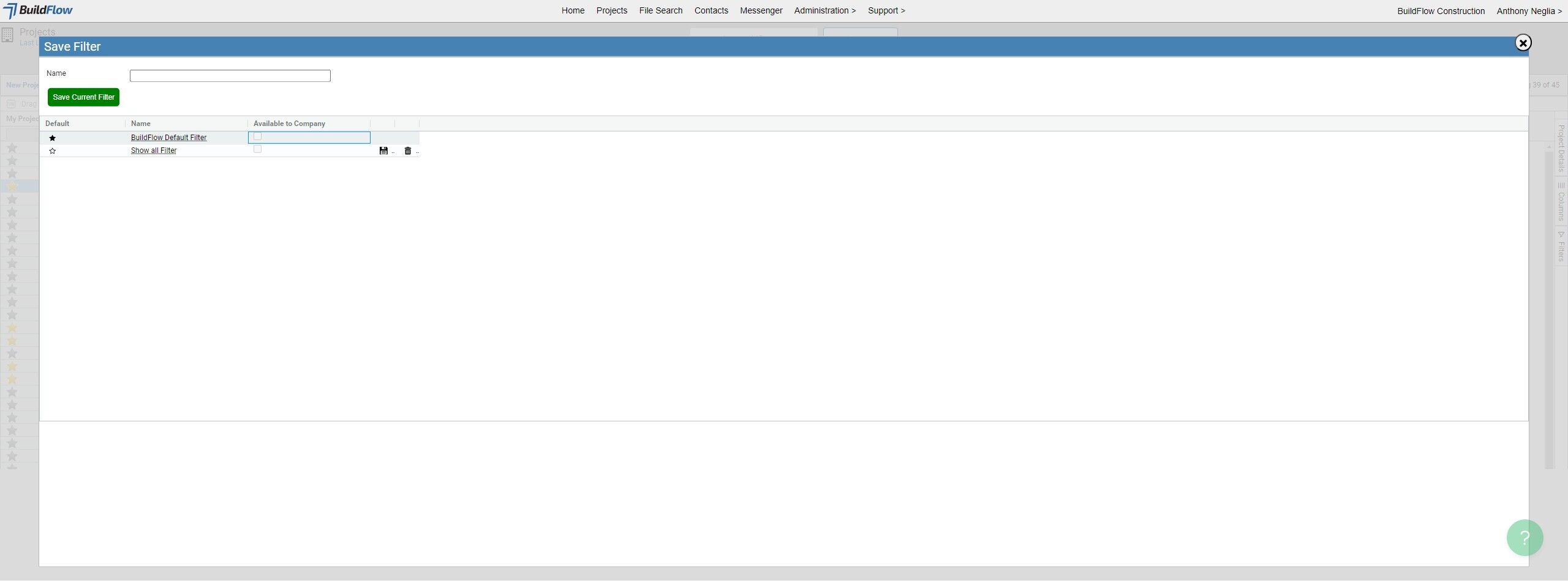 12. Click here to see your Saved Filters Inventory: Each user begins with the BuildFlow Default Filter as a starting point.