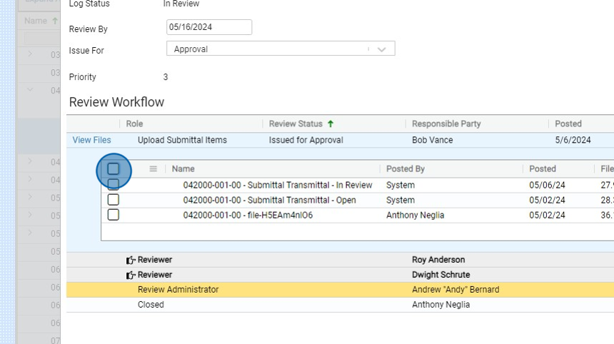 Tip: The Review Administrator can Approve or Reject a Submittal Item at any time during the review.