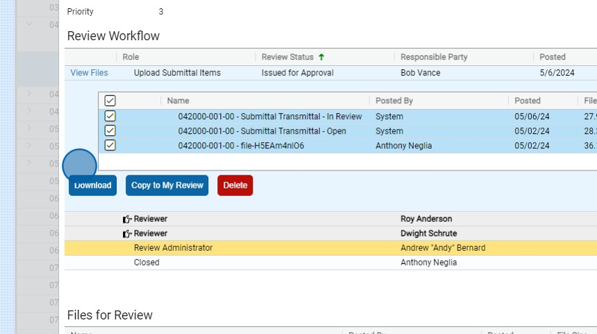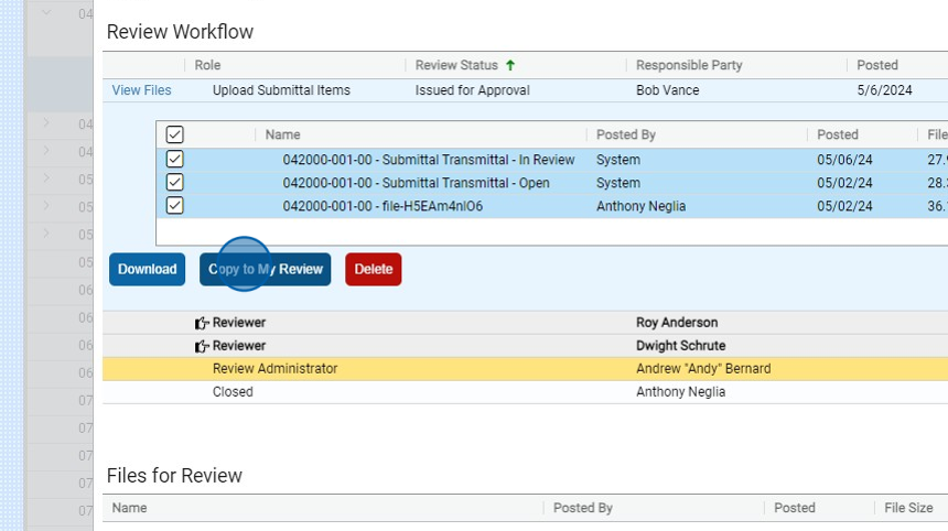 7. Click "Copy to My Review" to copy the files from Upload Submittal Items to your Review Submission location.