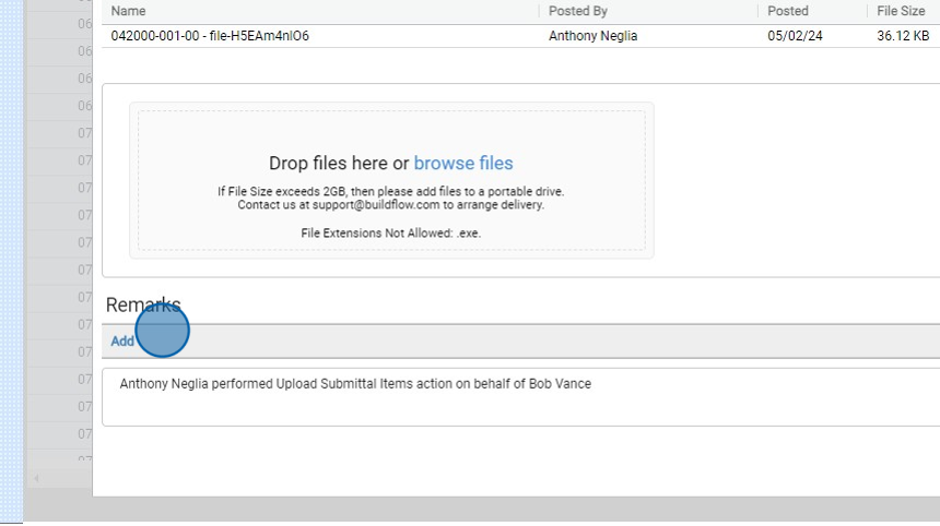 Tip: Upon completion of your file upload, the submittal item’s closure will be contingent on the Review Status you have chosen. Should the item receive approval status, it will be closed automatically. Conversely, if the item is rejected or requires resubmission, it will revert to the Submittal Administrator for the necessary revision process.