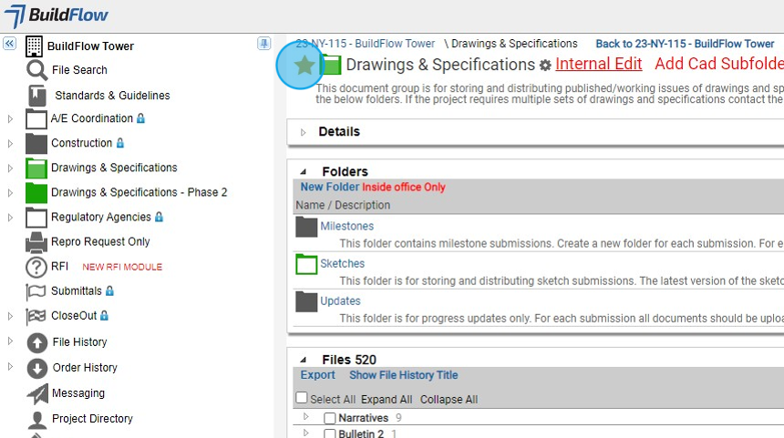 1. Once in the Project you where the folder you want to add to your "My Favorite Folders