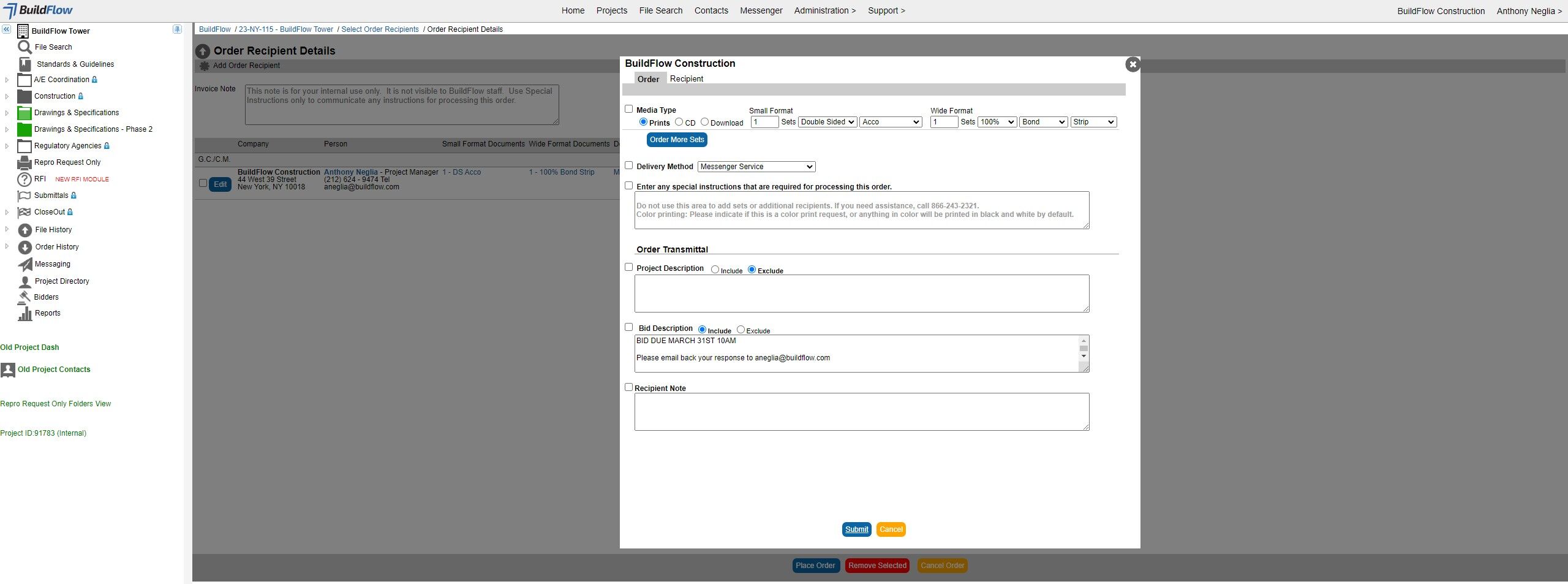10. Choose your recipient from your project directory or "Add Recipient" if they are not on the Project Directory.