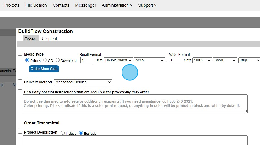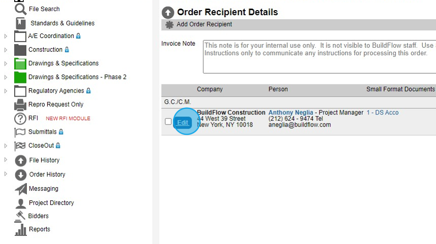2. Choose your recipient from your project directory or "Add Recipient" if they are not on the Project Directory.