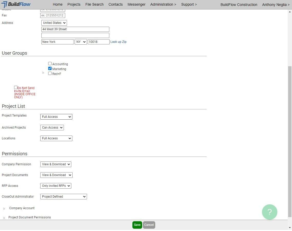18. CloseOut Administrator: This is where you can set a user to be the Closeout Admin for all projects if needed.