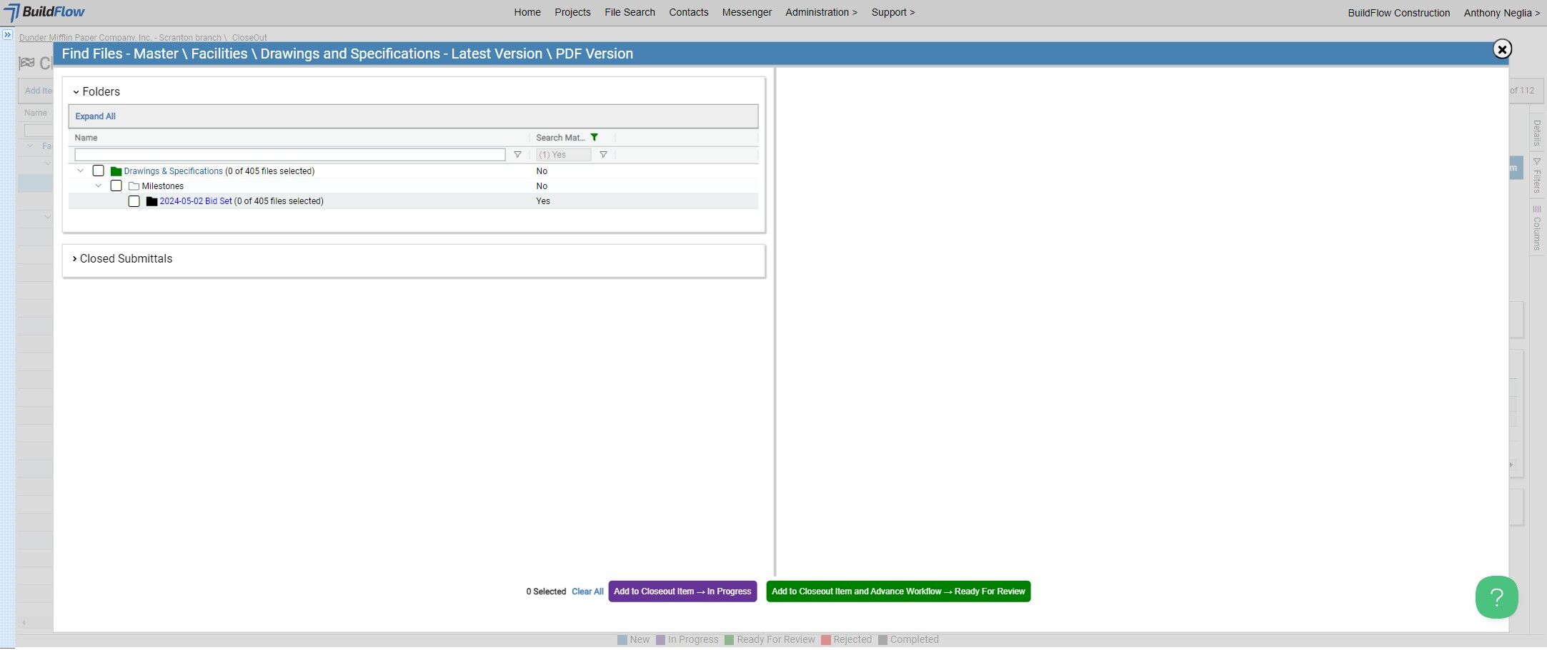 Tip! If you’ve been uploading your files to BuildFlow, our AI will automatically locate the files associated with the item in CloseOut. In case our AI doesn’t find them, but you’ve uploaded the files to BuildFlow, you can use the ‘Found File’ feature to navigate to the folder and input the files. This way, you avoid any double entry!