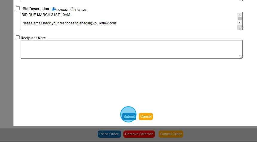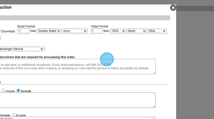 19. Click the "Enter any special Instructions that are required for processing this order". This is where you would put in a specific size, Color or Rush if these apply to the order.