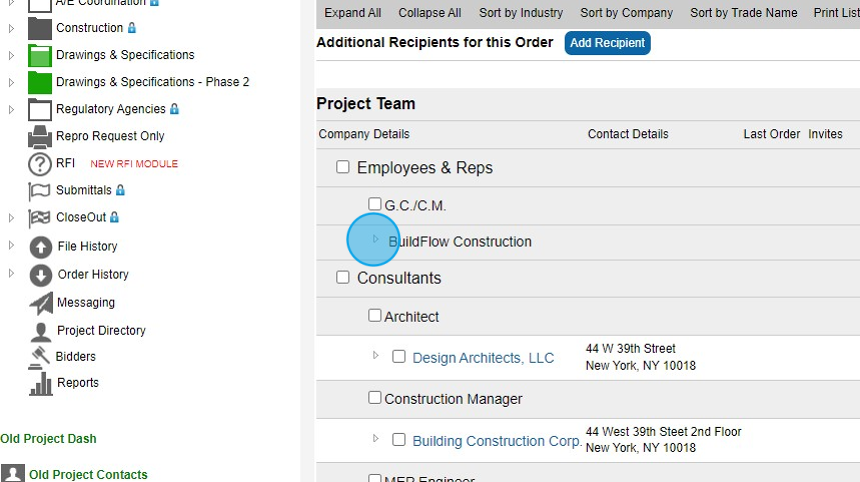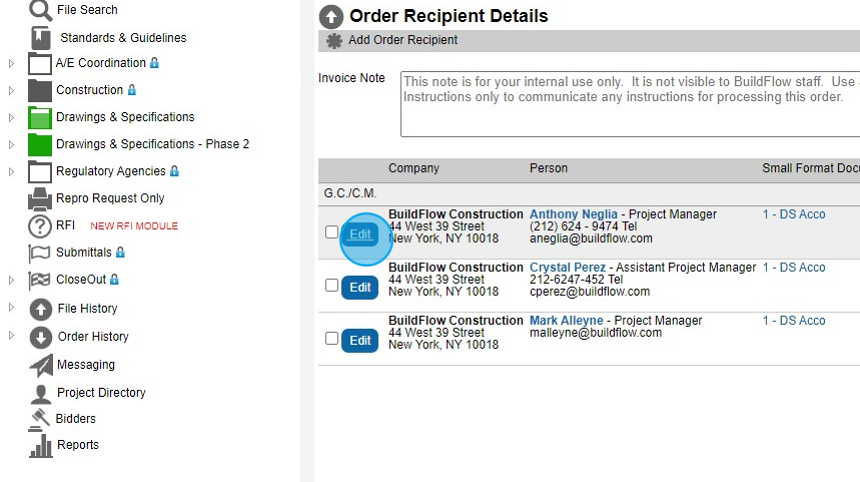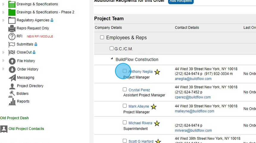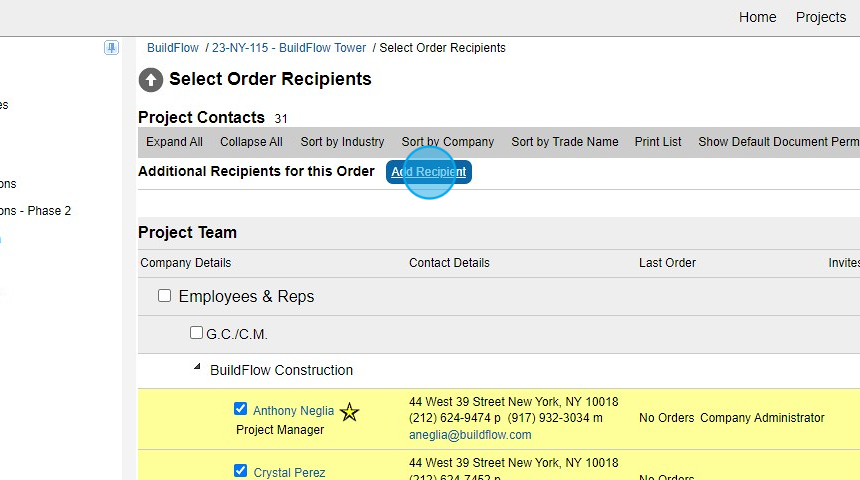 15. Click "Add Recipient" If you do not see the person in the Project Directory and can be added on the fly