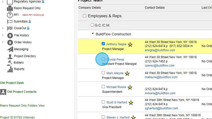 13. Here you can choose the company and contacts who will be receiving the prints or download order