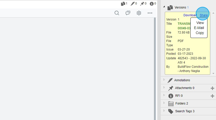 5. Click the "Stack of Paper" in the top right corner of the file in the viewer. This will give you you version control and other options.