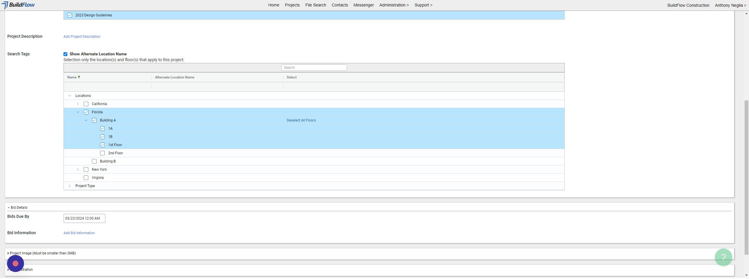 Alert! IT IS VERY IMPORTANT TO ONLY SELECT THE LOCATION(s) and Floor(s) that apply to the project or you will get bad search results.