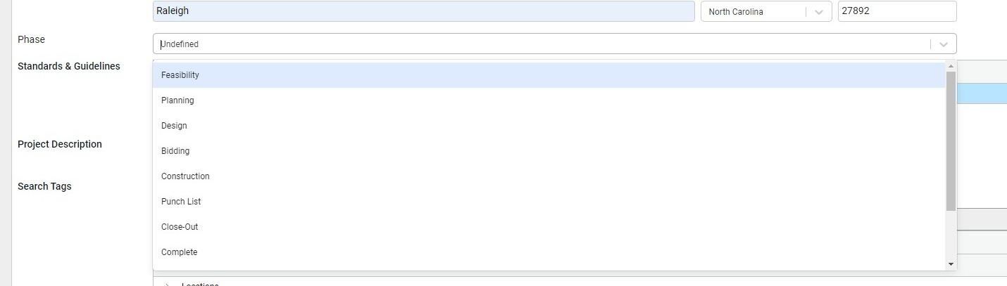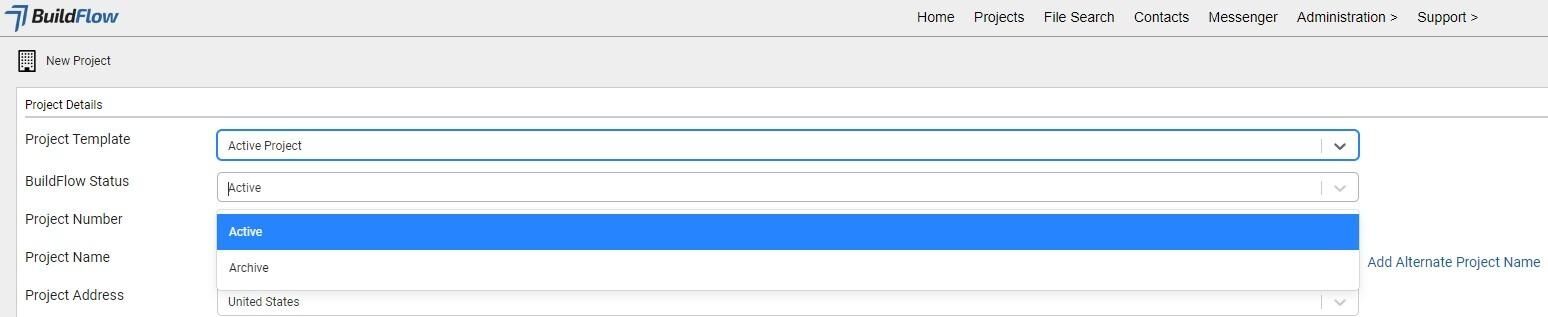 Select Archived if the project is complete and is being entered for record.