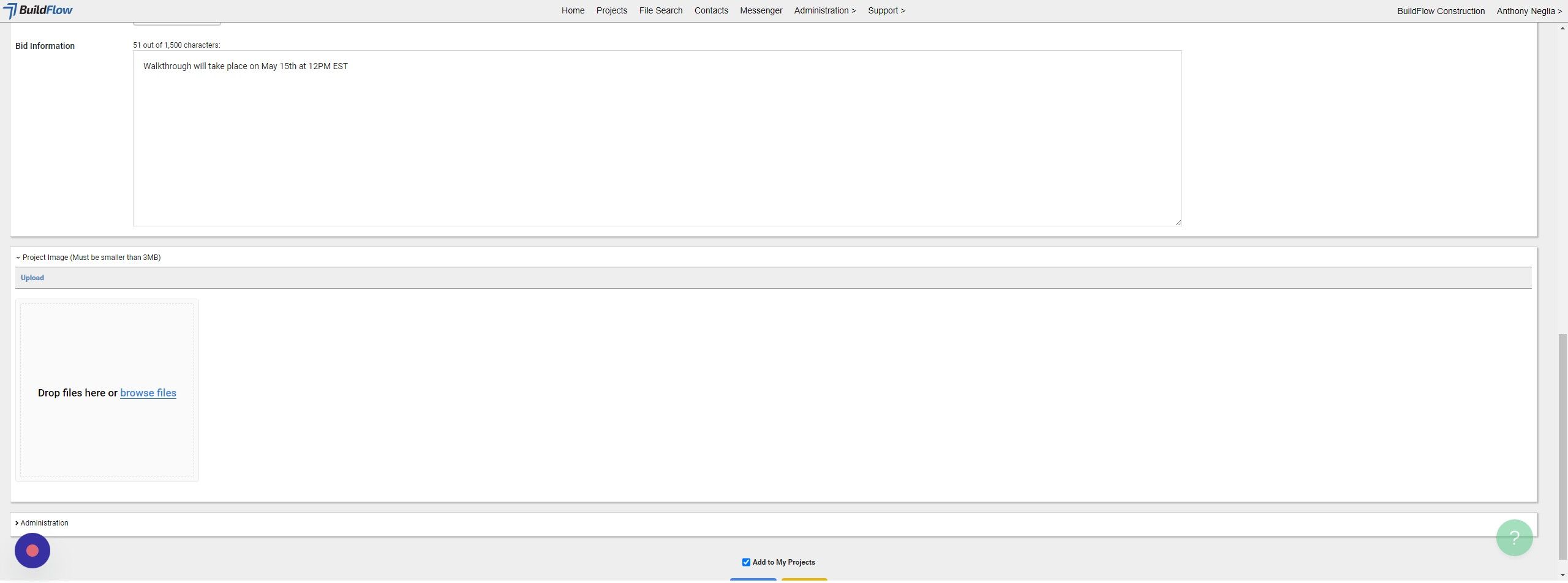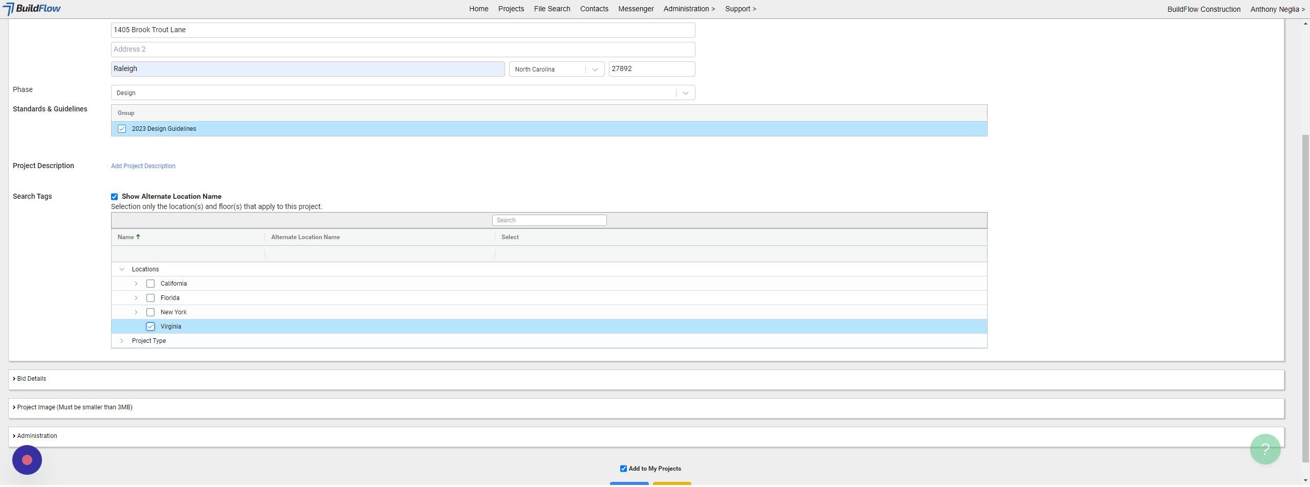 12. If the project will be going out to bid click "Bid Details"