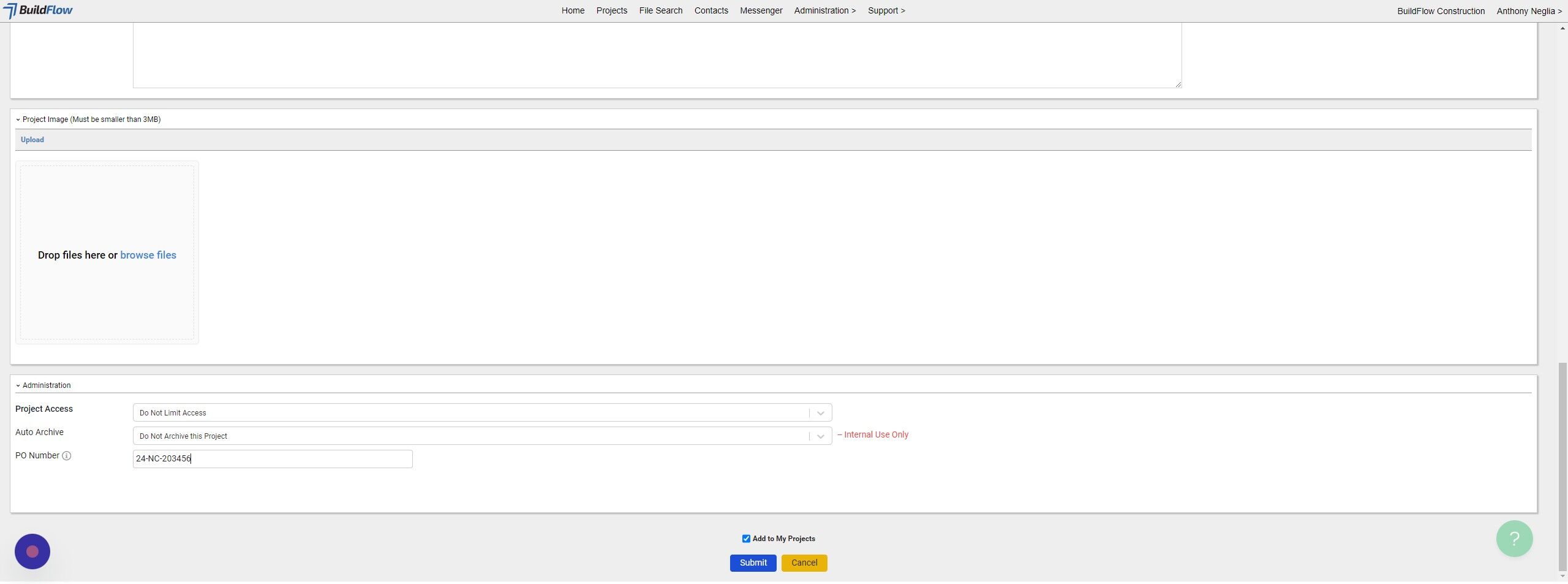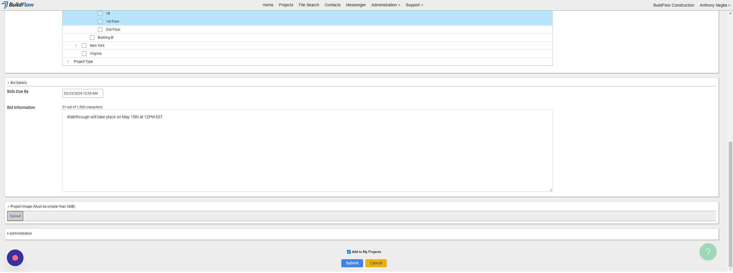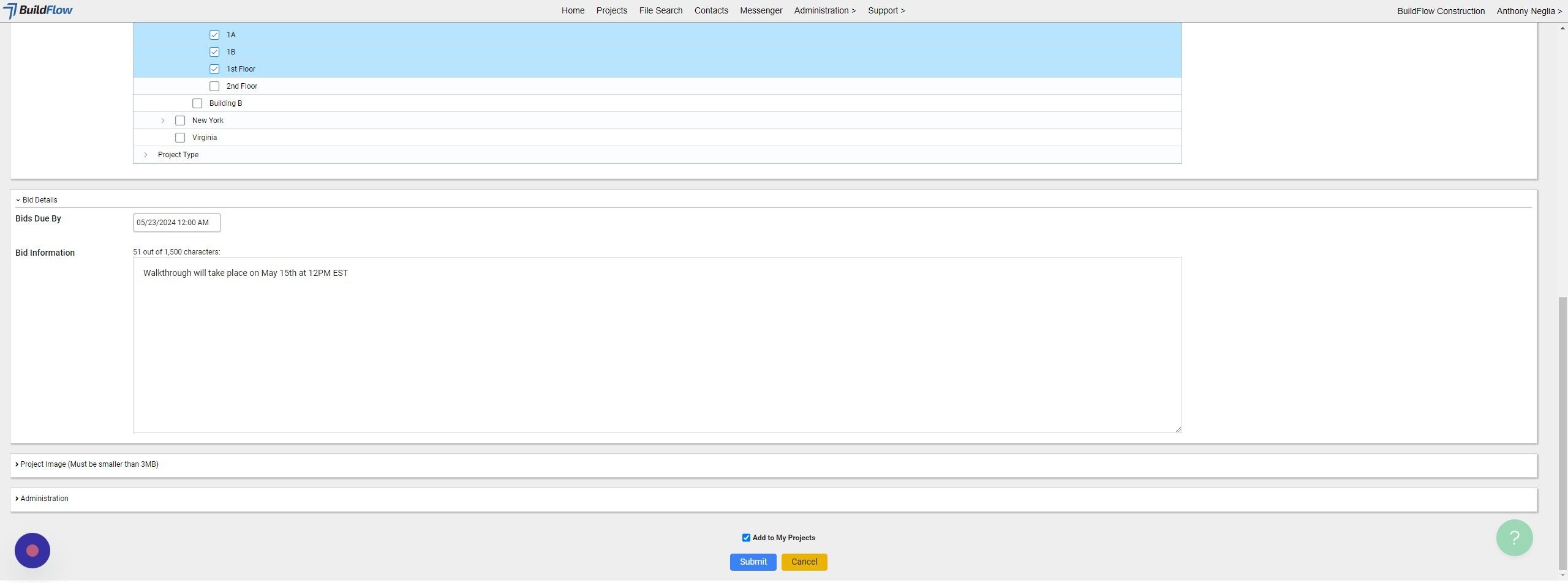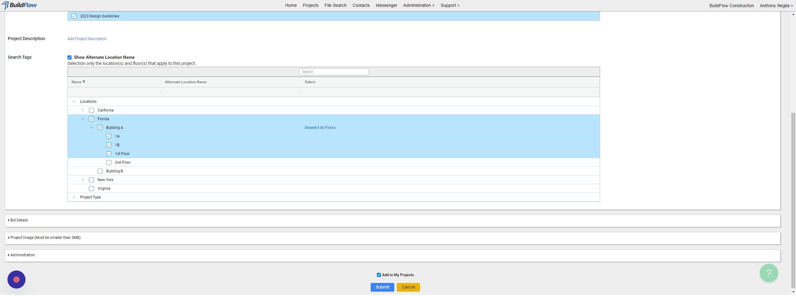 21. Click "Submit" and your project will be created in BuildFlow