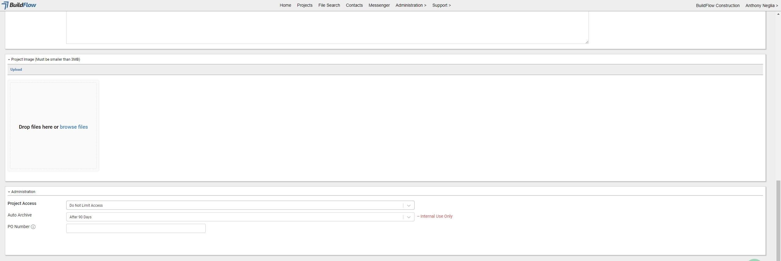 4. Click the "Project Number" field if you have a job number associated with the project