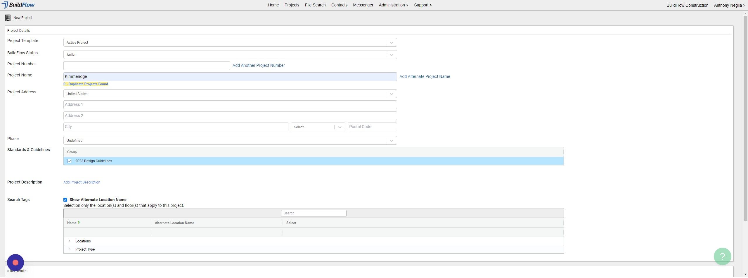 This guide provides step-by-step instructions on how to create a new project in BuildFlow.